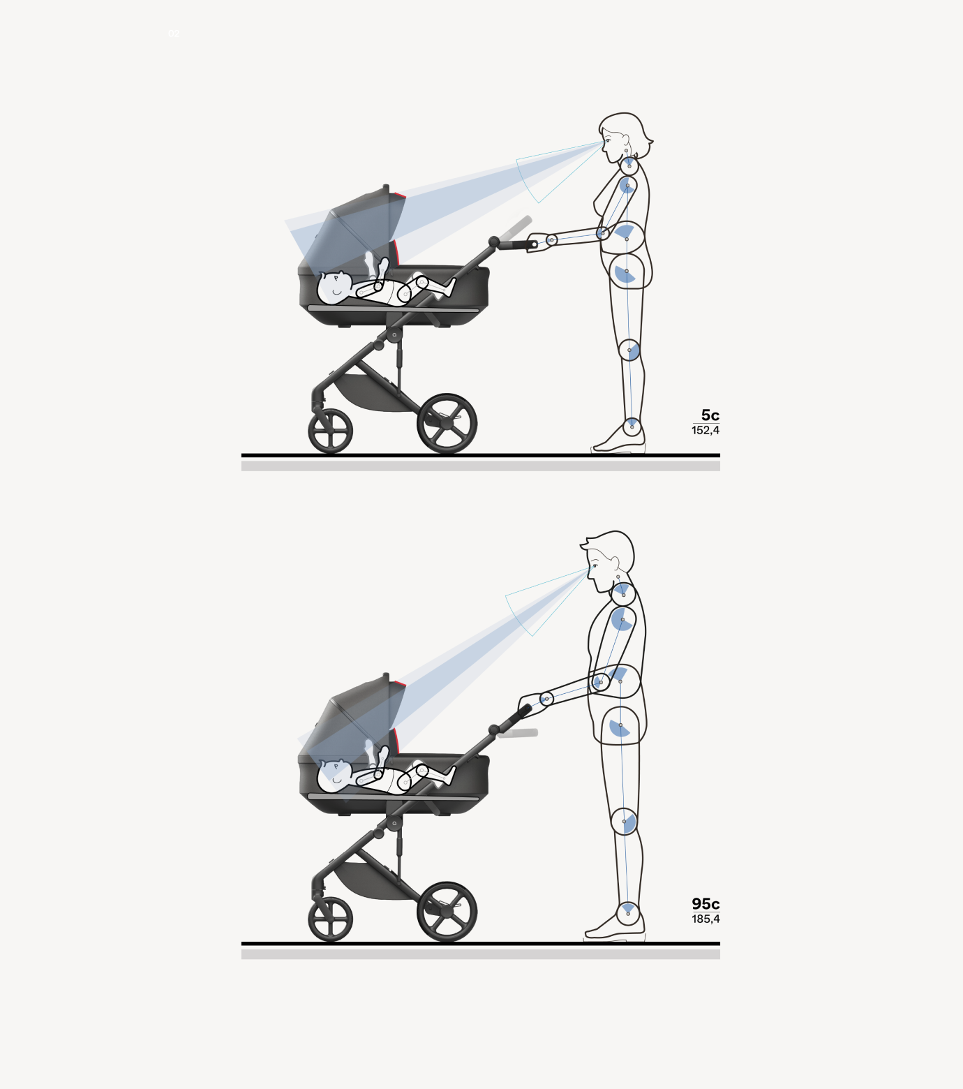 Child ergonomics were a key focus – despite necessary compromises, we ensured optimal positions and the best possible interaction for all users. Carefully measured proportions based on ergonomic analysis allowed us to offer more configurations than other strollers on the market.