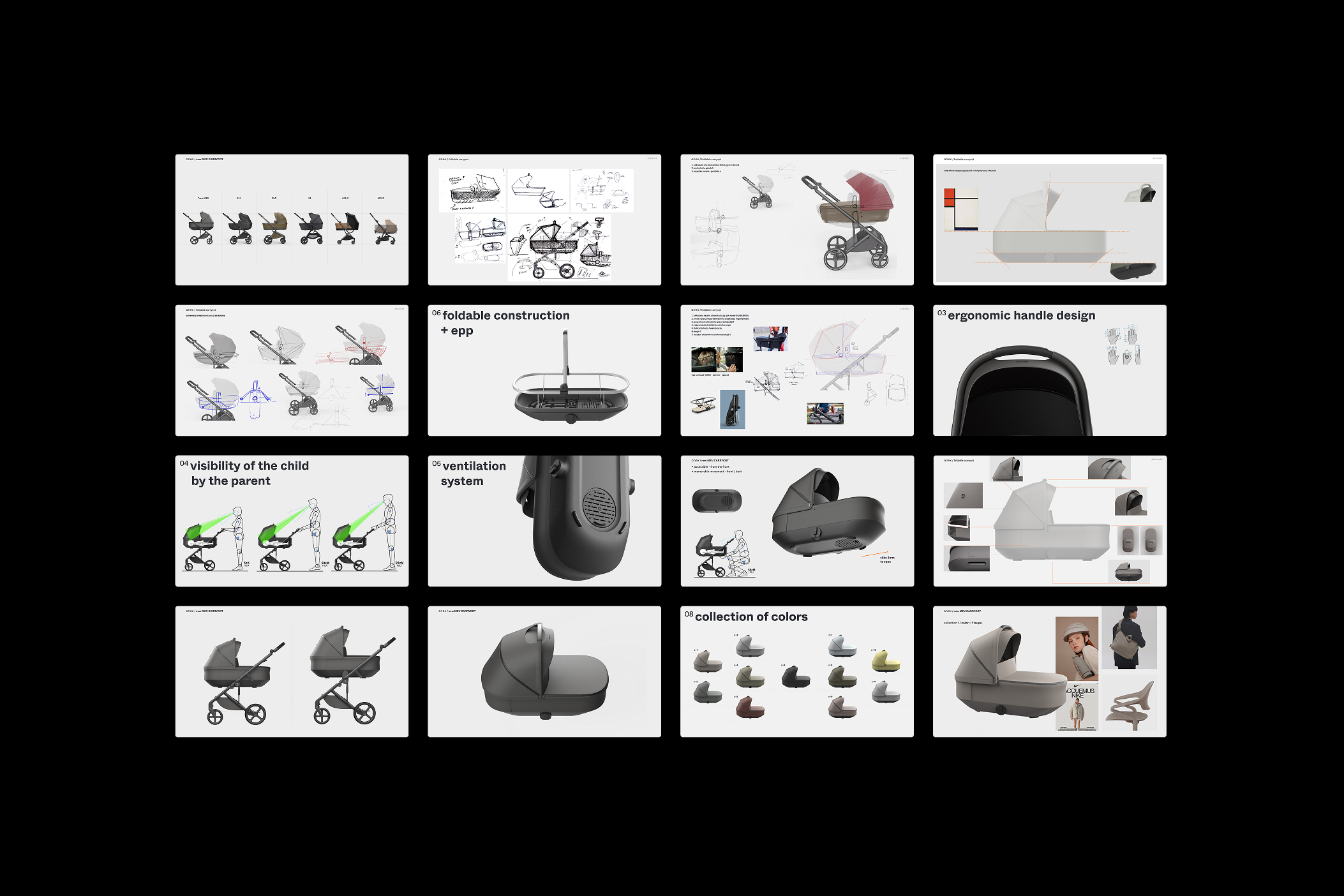 The scope of the project included the comprehensive design development of all product elements, including the frame, seat, and carrycot, as well as the selection of materials, finishes, and CMF.