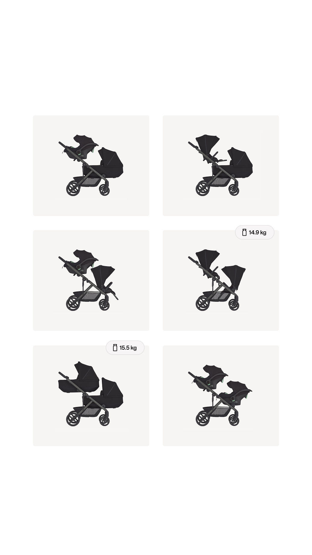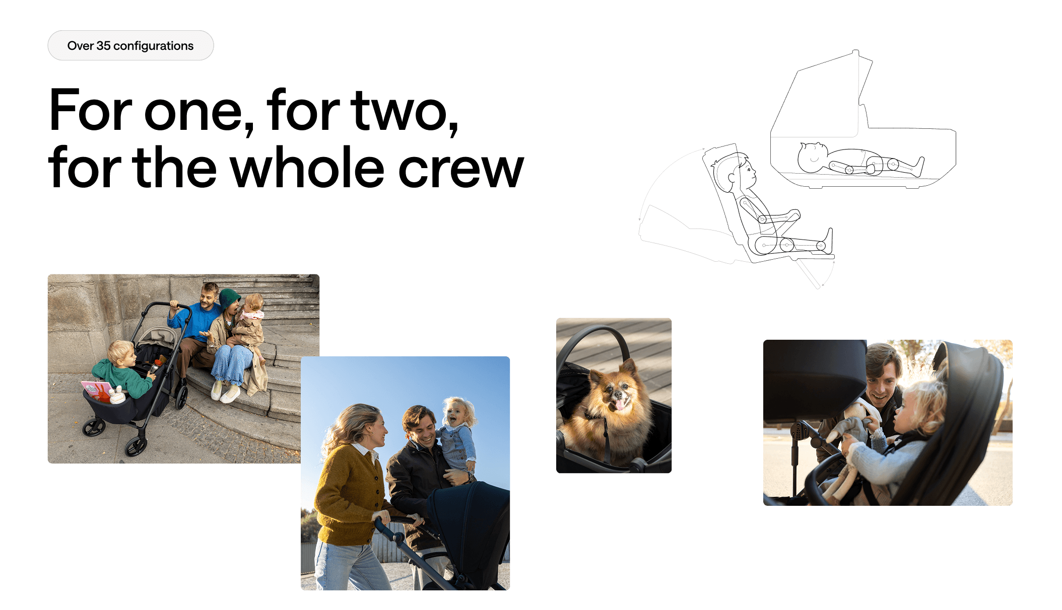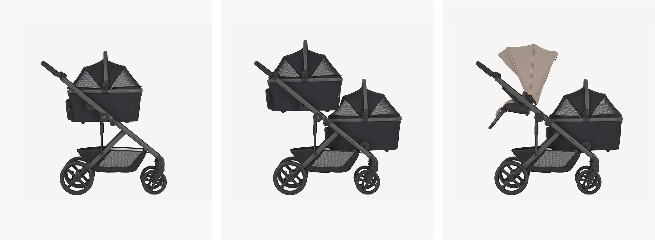 Over 35 configurations designed to adapt to real family life. Wherever the day leads, Modu adjusts with ease. Its modular design allows seamless mixing, matching, and switching between setups to keep pace with growing families.