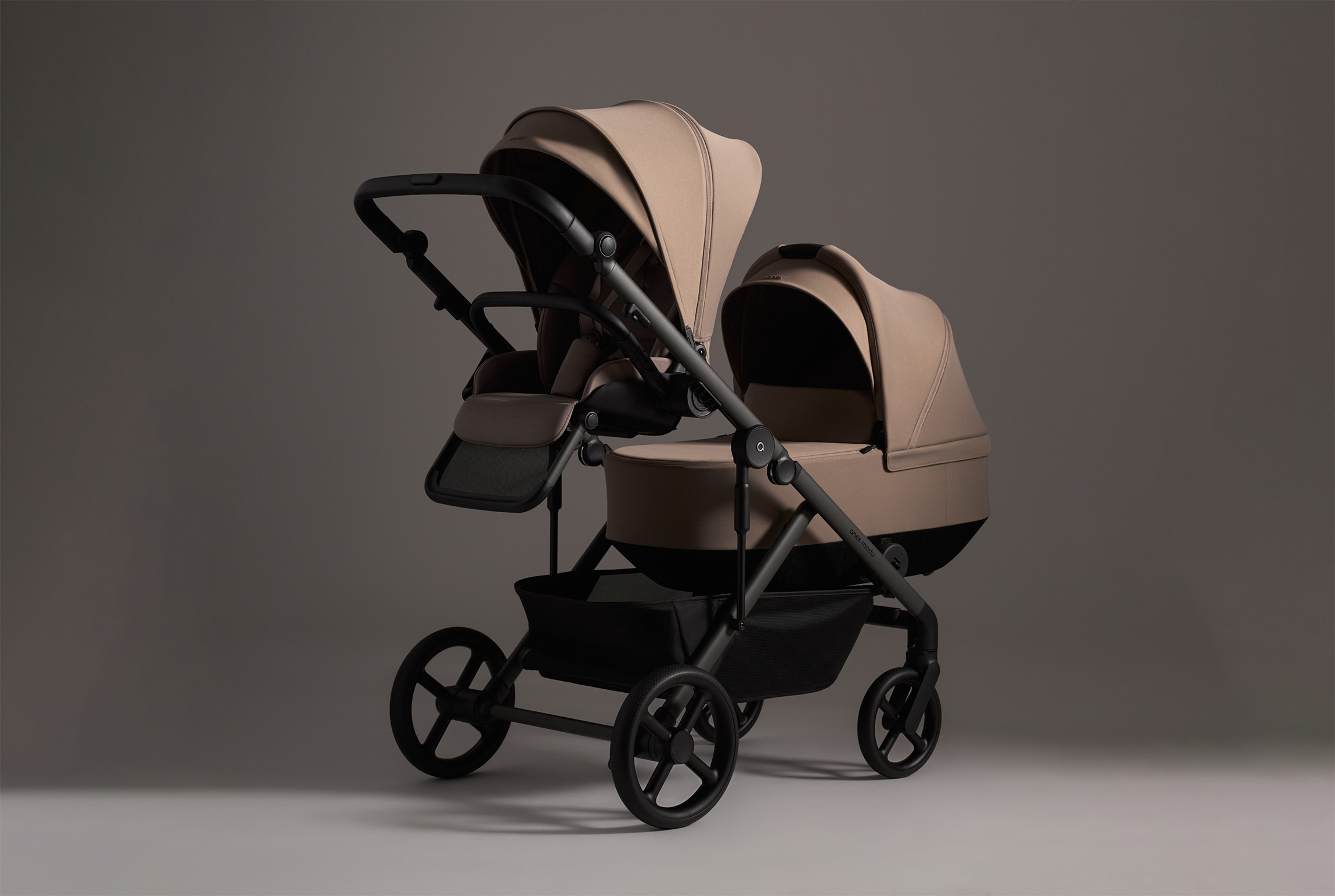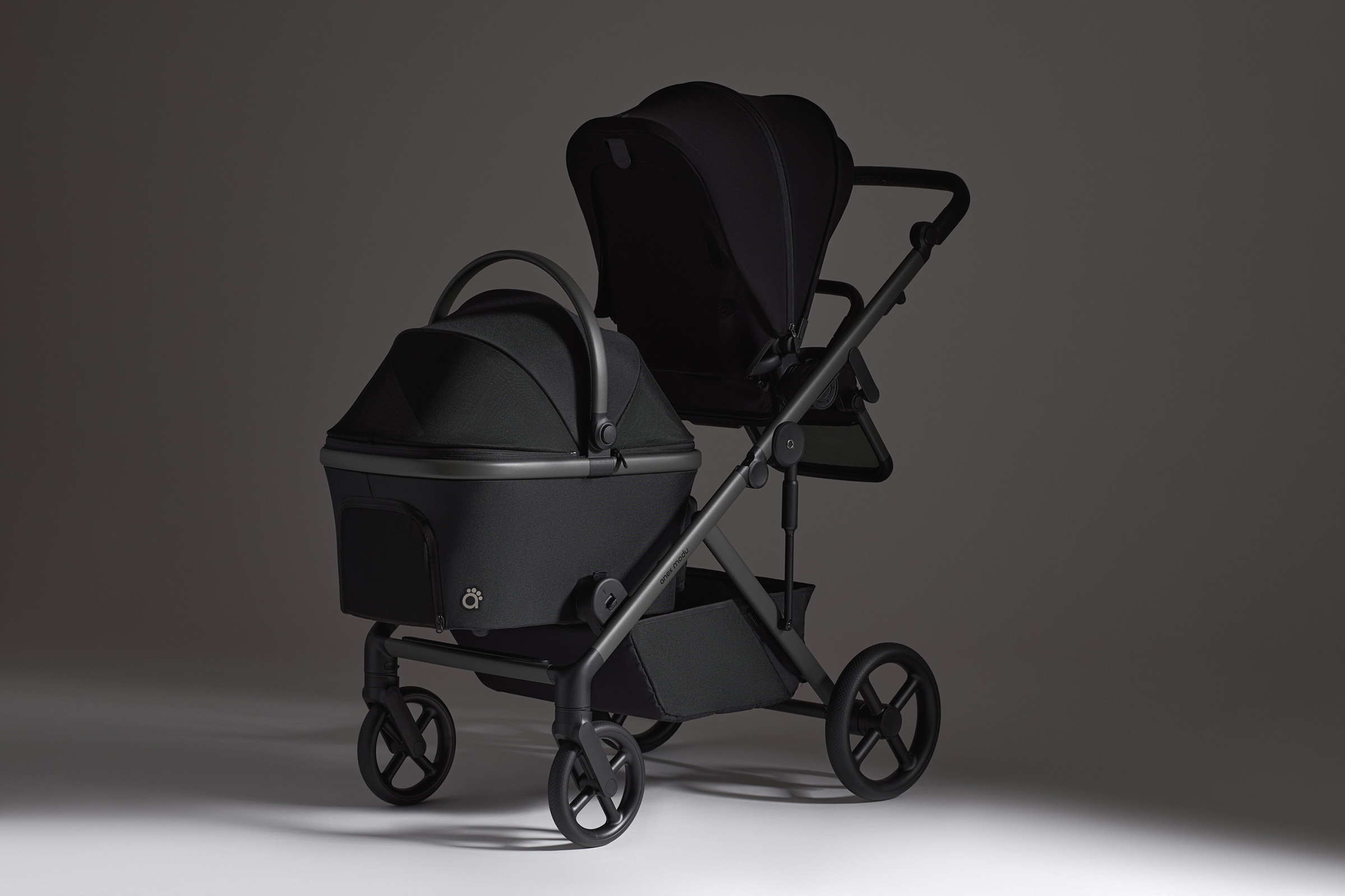 When designing the Modu stroller, we aimed to preserve Anex’s minimalist design language, a significant challenge for such a complex product with multiple configurations. Simplifying shapes and reducing details improved usability while keeping the stroller lightweight.